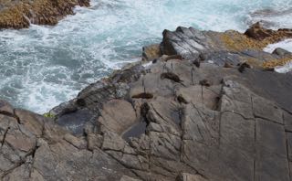 New Zealand fur-seals are more fun than sea lions. They squeal and slither across the rocks, dive in or get swept into the sea, clamber back and the whole process starts again.